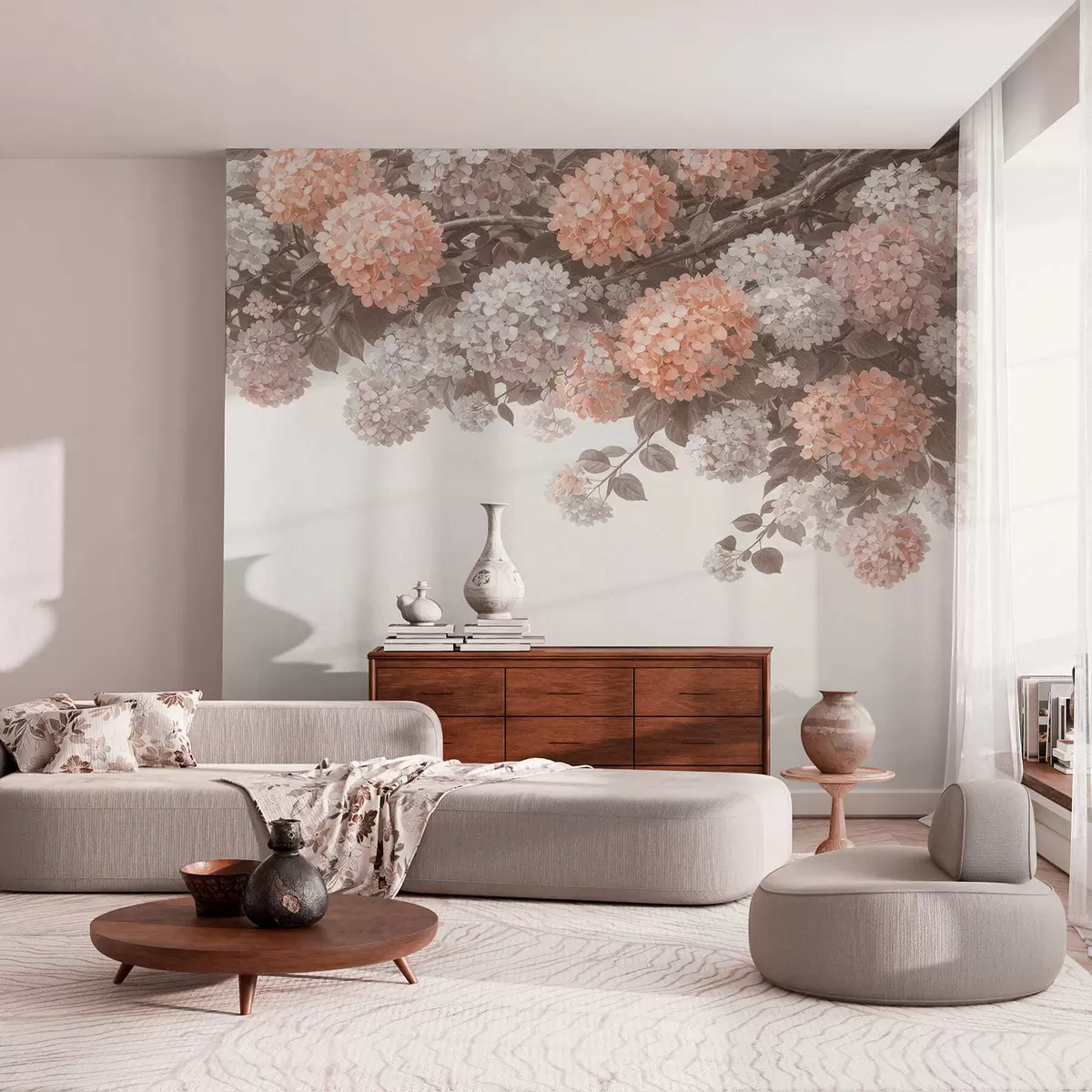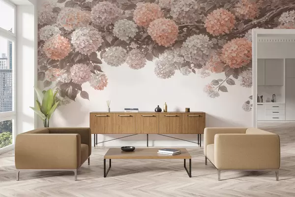 Fotobehang Geschilderde hortensia's hangen naar beneden N° w05250v1
