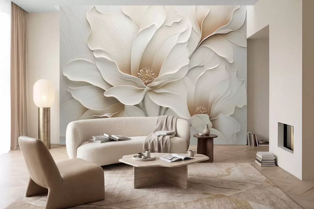 Fotobehang Close-up van beige bloemreliëf in reliëf N° w05269