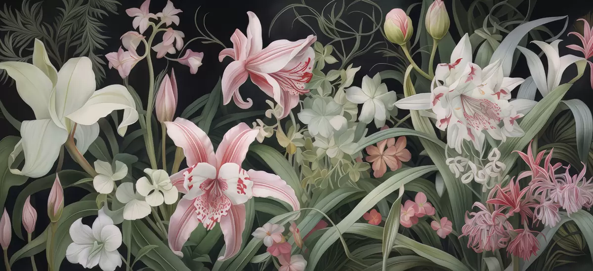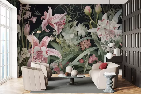 Fotobehang Fantastische bloemen op een donkere achtergrond N° w05278