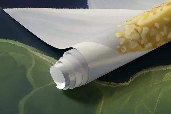 Het resultaat is dat je je behangpapier al in rollen gesneden ontvangt, netjes verpakt voor levering.