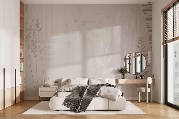 Fotobehang Minimalistische compositie met grassen en vormen N° w05318