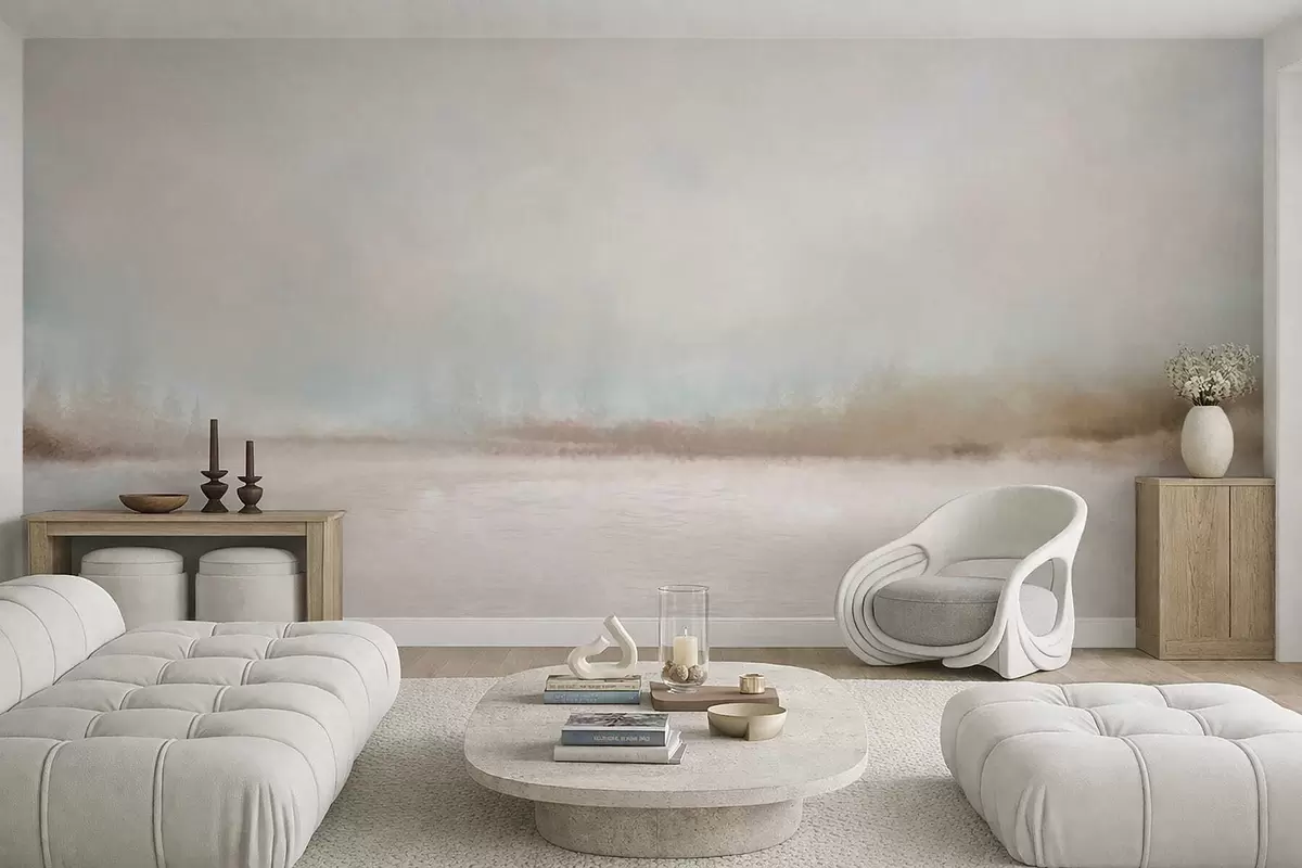 Fotobehang Mistig landschap met meer en bos N° w05319