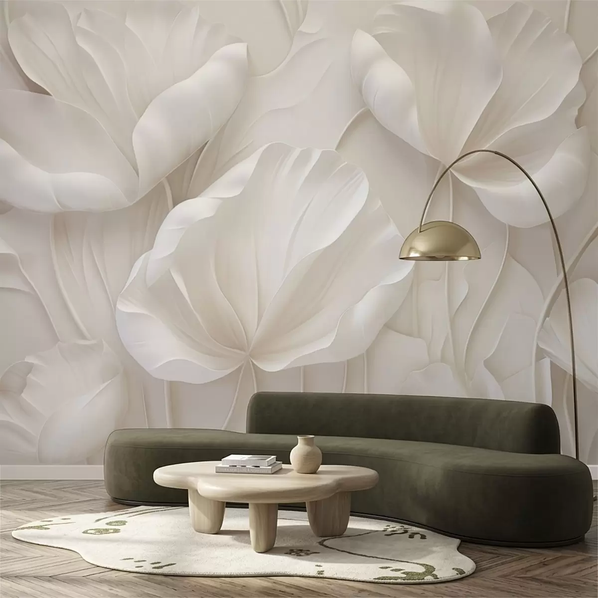 Fotobehang Gevormde lichte bloemen met zachte bloemblaadjes N° w05355