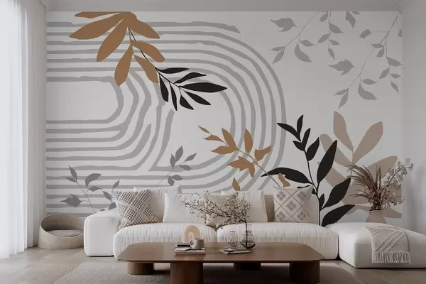 Fotobehang Abstracte plantensilhouetten en lijnen N° w05374