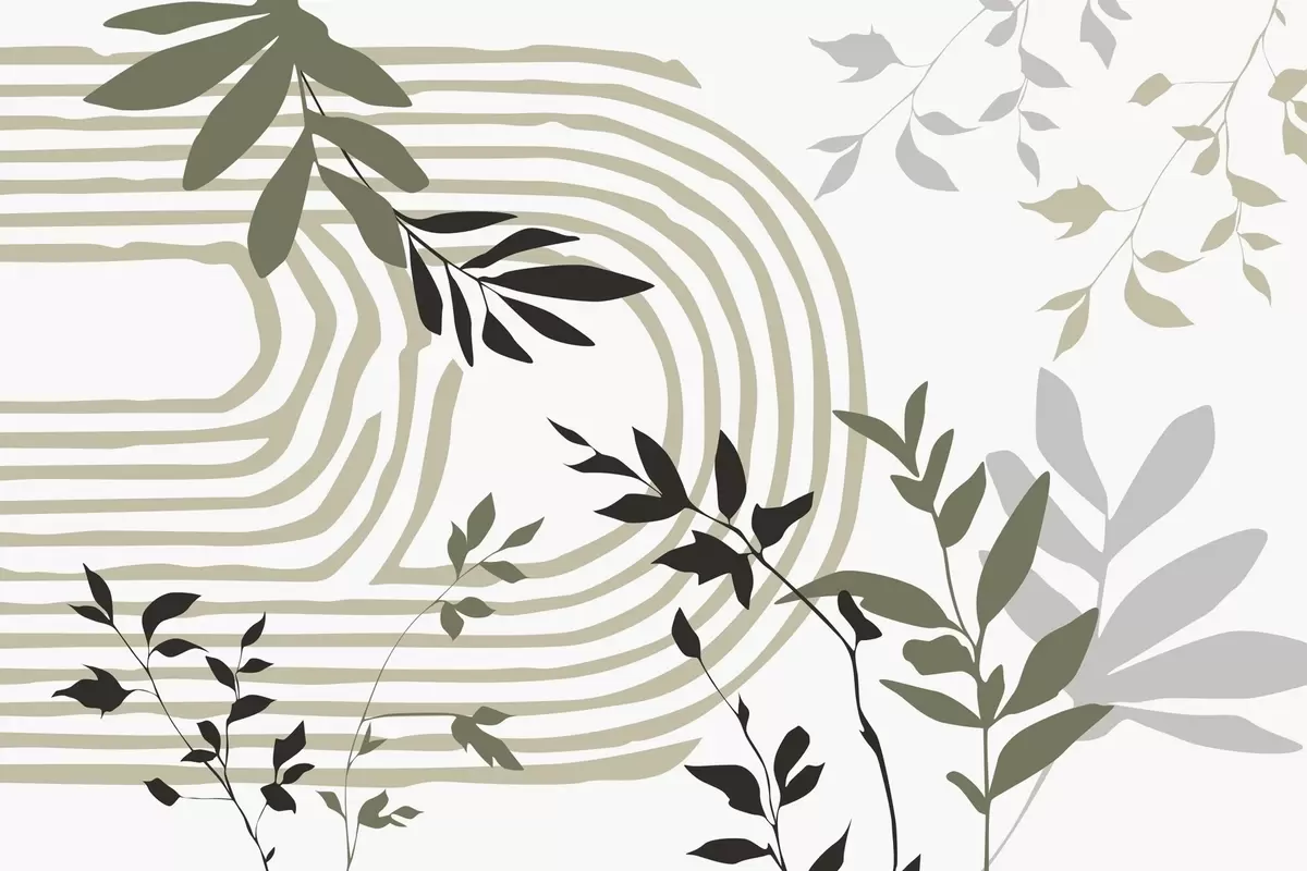 Fotobehang Abstracte plantensilhouetten en lijnen N° w05374v1