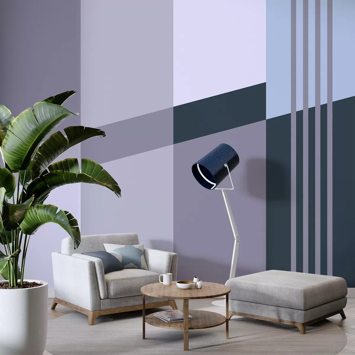 Fotobehang Ingetogen geometrische patronen in grijstinten en blauwtinten N° w05390v1
