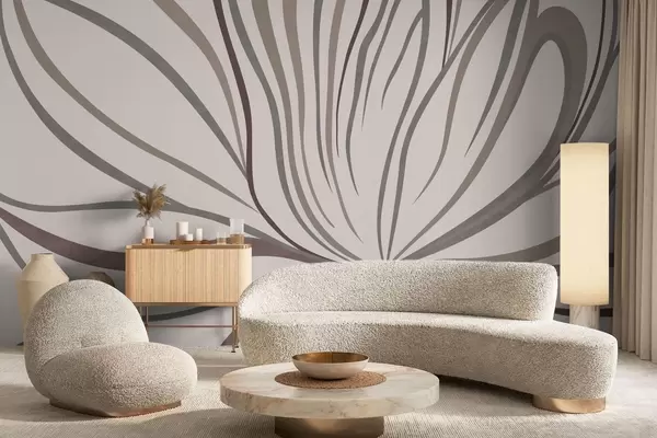 Fotobehang Abstracte bloem met lijnen in grijze en roze tinten N° w05392