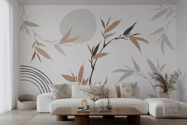 Fotobehang Abstracte tak met bladeren N° w05398