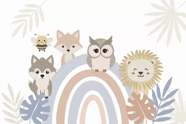 Fotobehang Schattige dieren bij de regenboog N° w05399