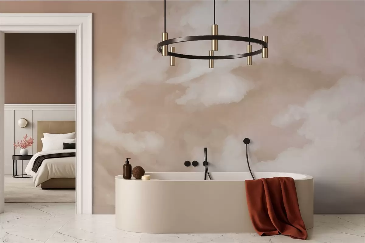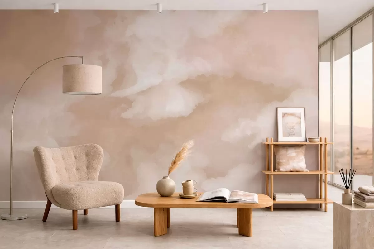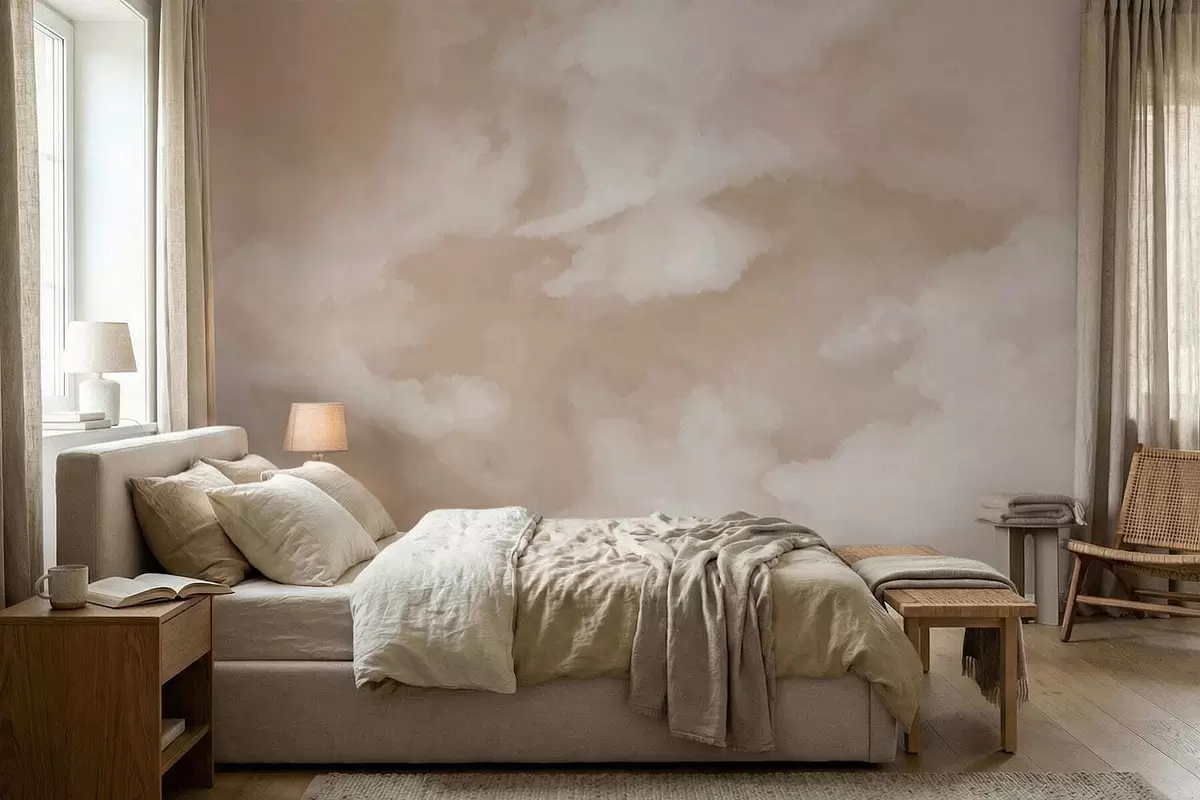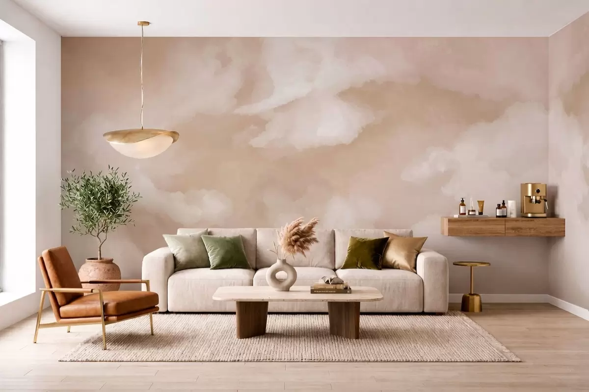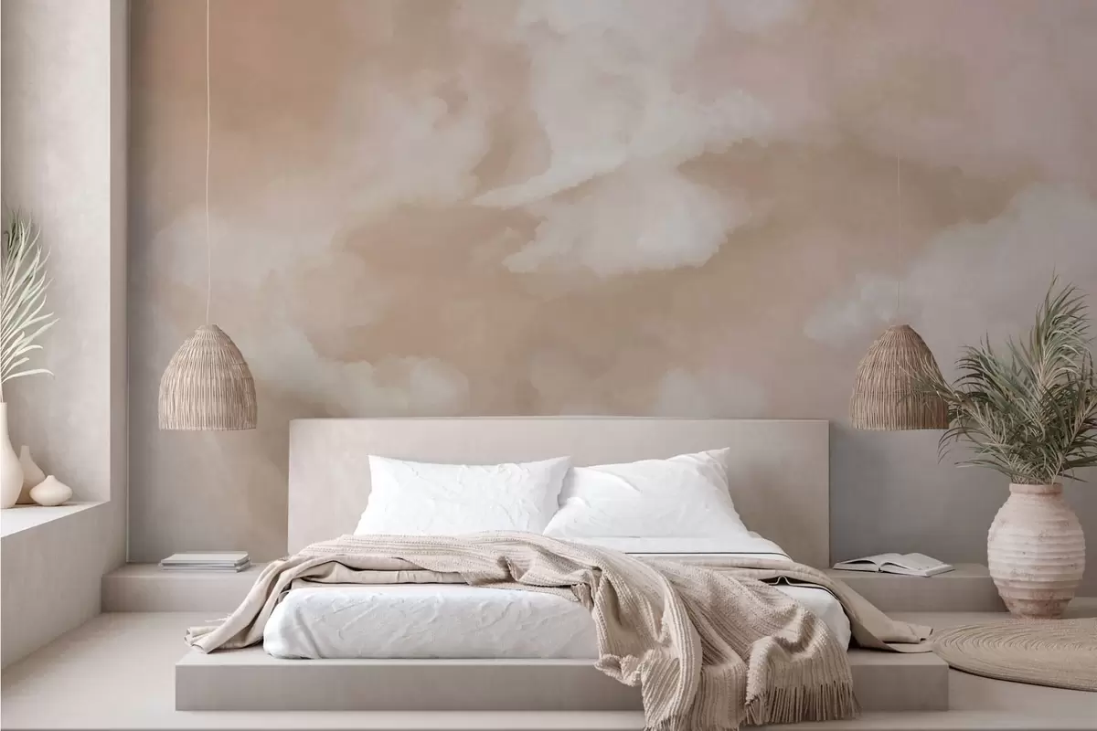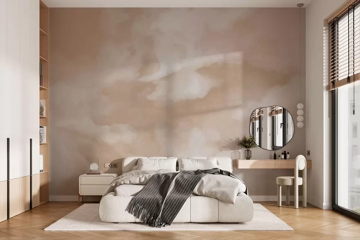 Fotobehang Zachte, bewolkte achtergrond in warme beige tinten N° w05426