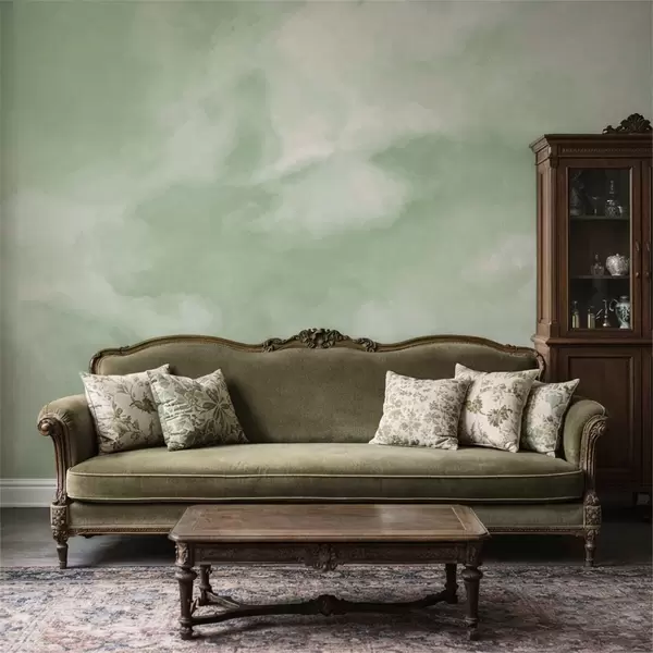 Fotobehang Zachte, bewolkte achtergrond in zachte groene tinten N° w05426v2
