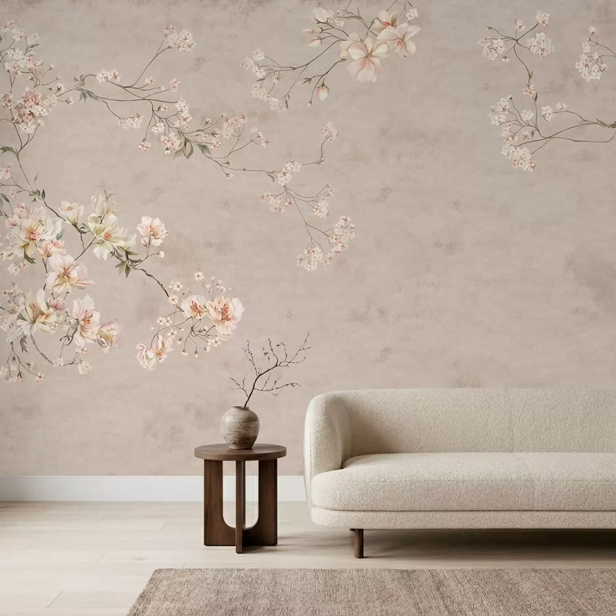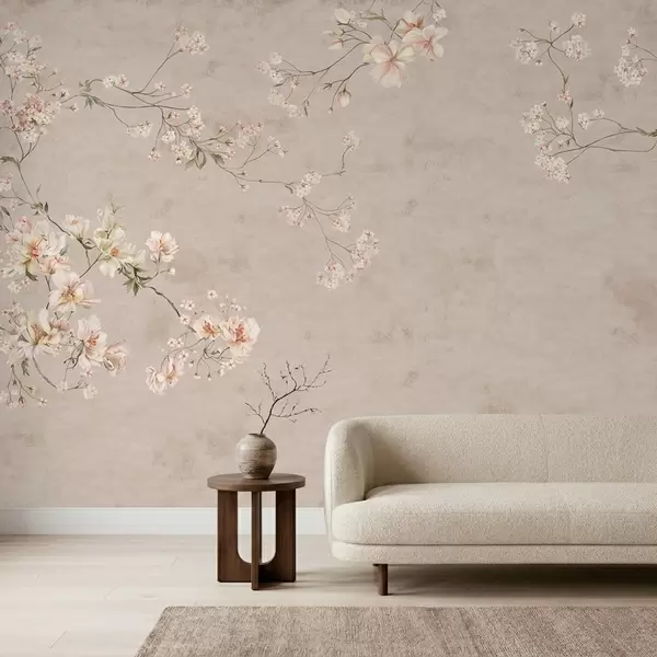 Fotobehang Chinoiserie: delicate bloemtakken op een lichte achtergrond N° w05427
