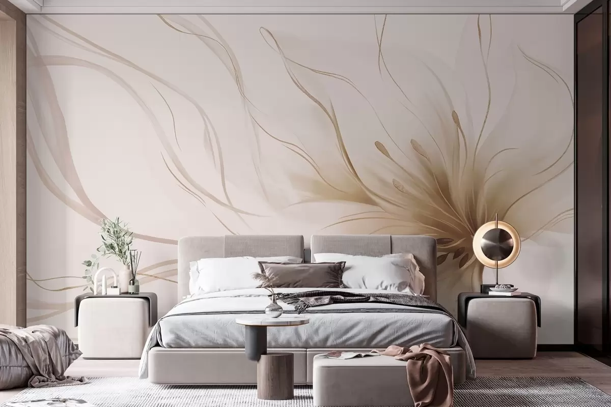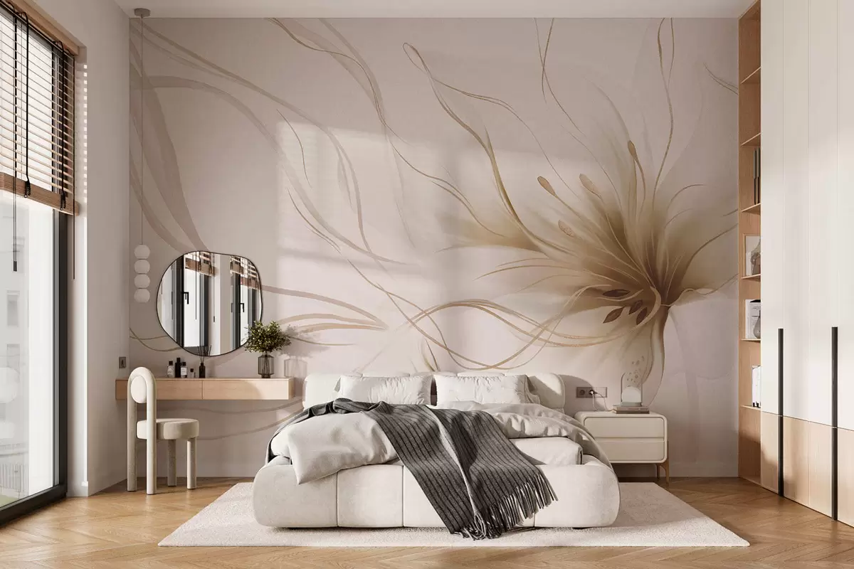 Fotobehang Een abstracte beige bloem met vloeiende lijnen in de Fluid Art-stijl N° w05428v2
