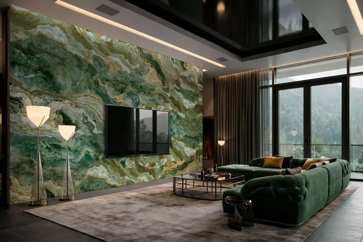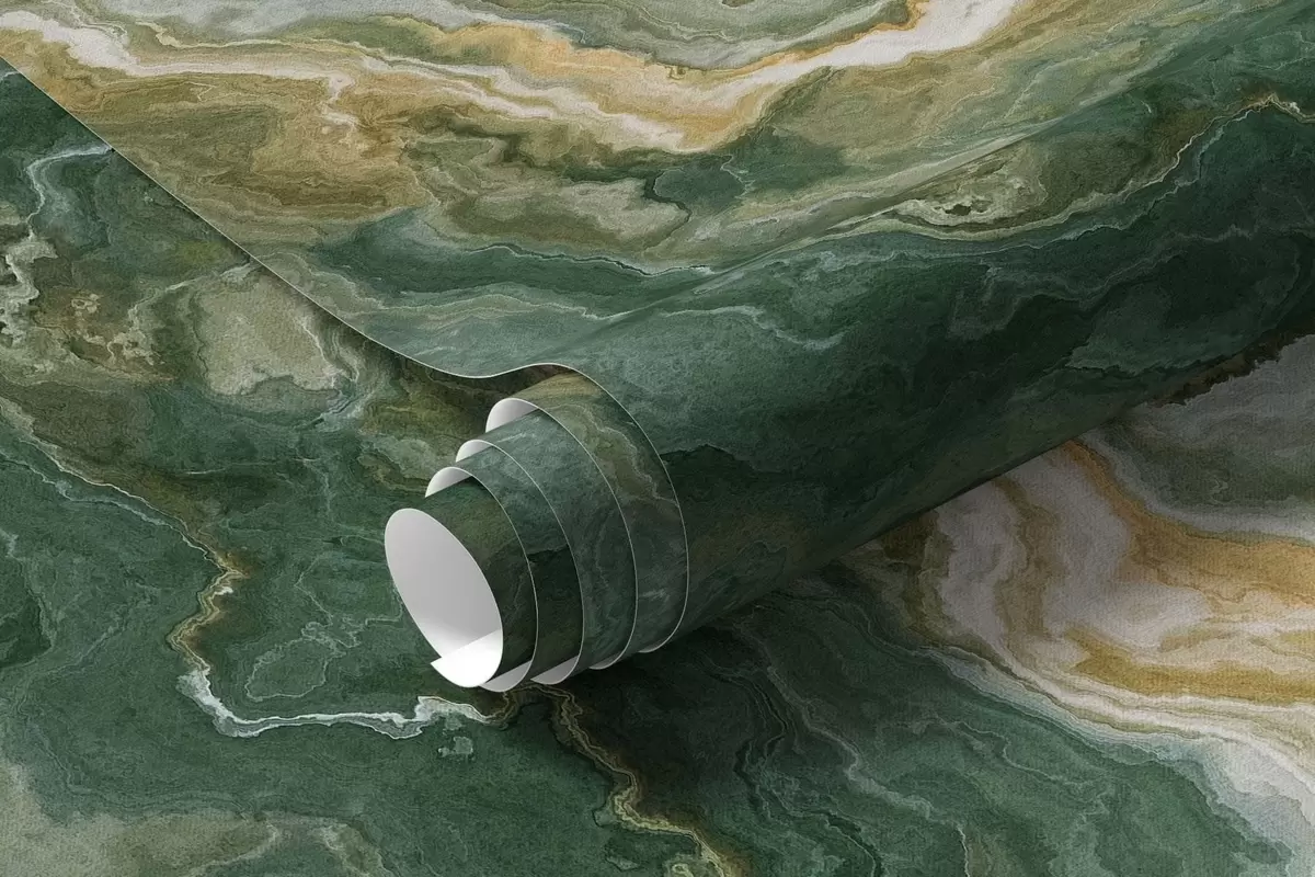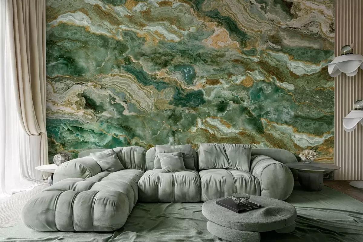 Fotobehang Groene onyxtextuur met vloeiende, gelaagde aders N° w05429