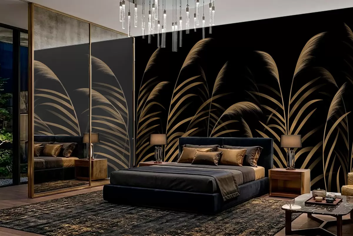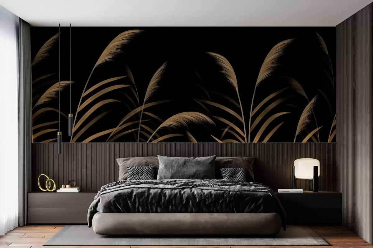 Fotobehang Minimalistische grassen op een donkere achtergrond met hoog contrast N° w05432v3