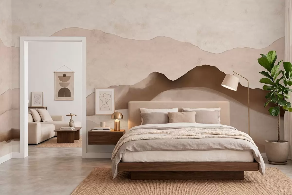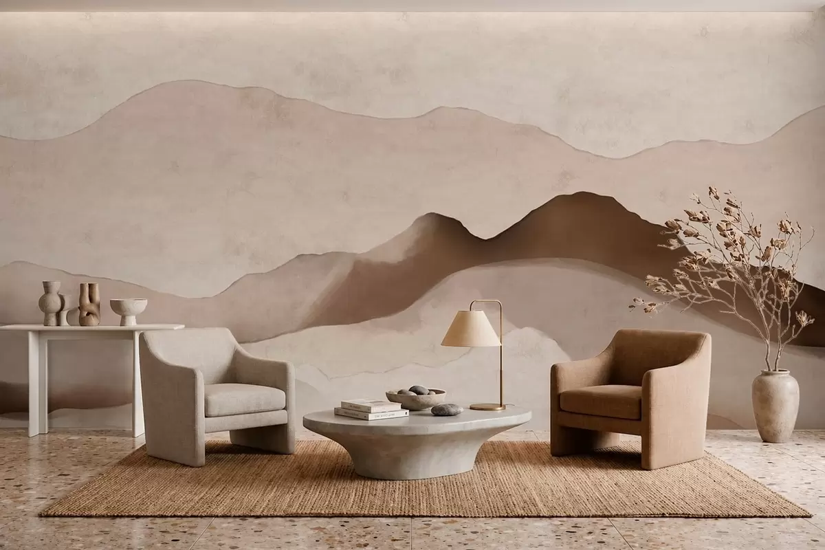 Fotobehang Abstracte bergen in de Japandi- en minimalistische stijl N° w05434