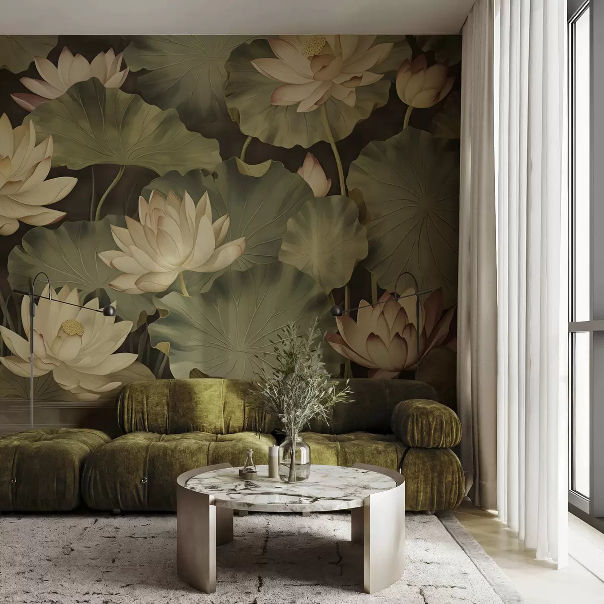 Fotobehang Vintage lotusbloemen N° w05445