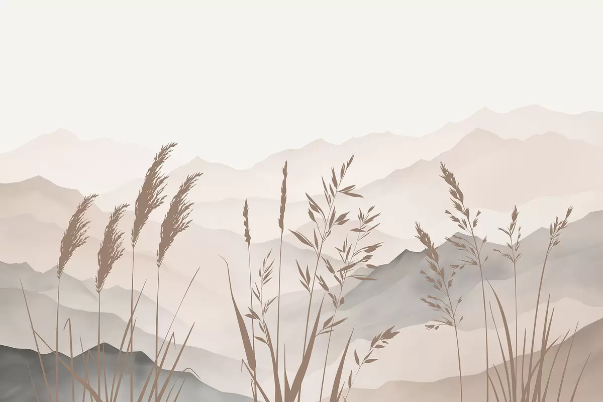 Fotobehang Gras silhouetten tegen de achtergrond van de bergen N° w05501v1