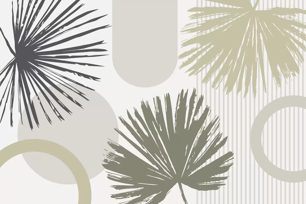 Fotobehang Abstracte compositie met planten- en geometrische silhouetten N° w05505v2