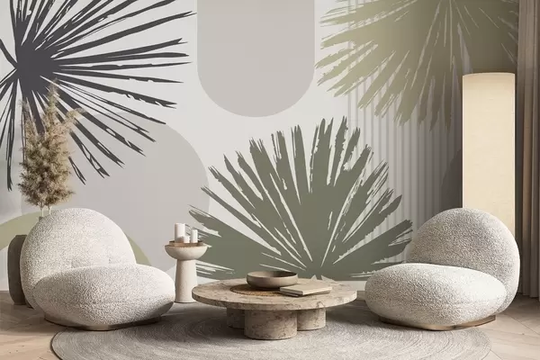 Fotobehang Abstracte compositie met planten- en geometrische silhouetten N° w05505v2
