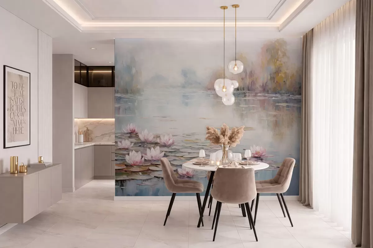 Fotobehang Impressionistisch meer met waterlelies en zacht licht N° w05515