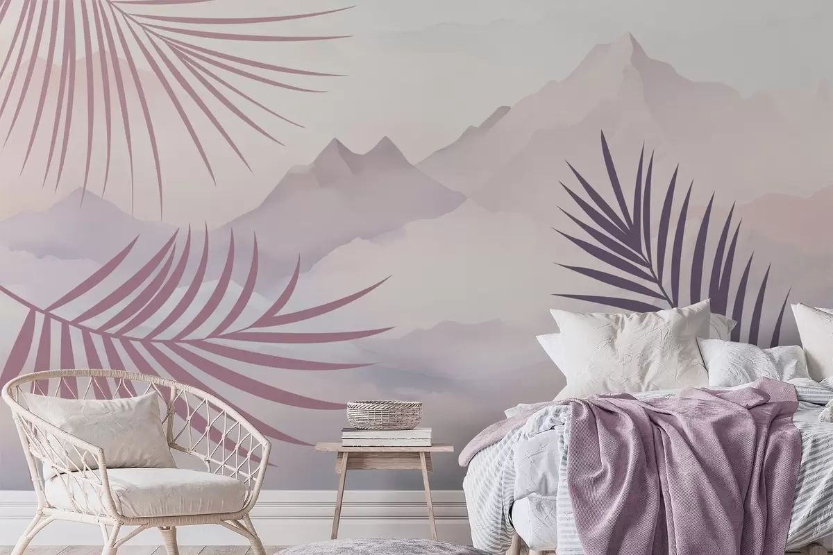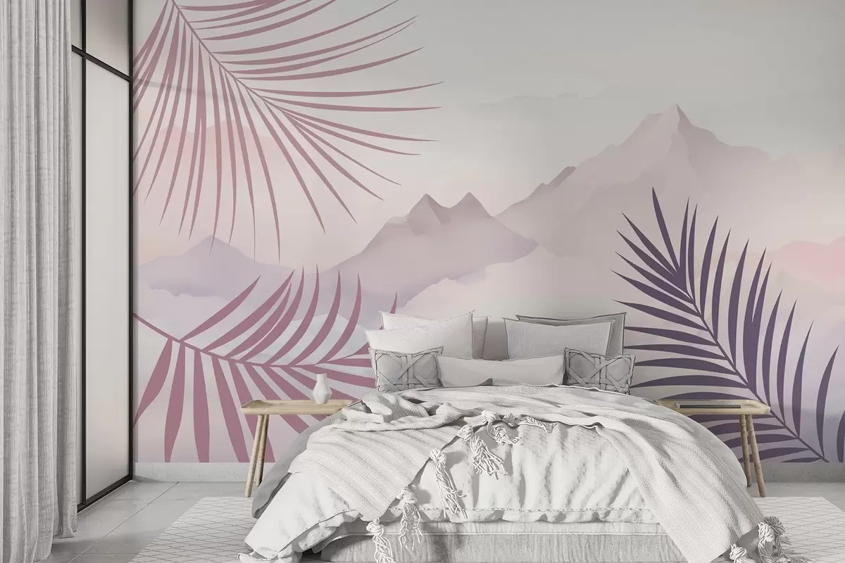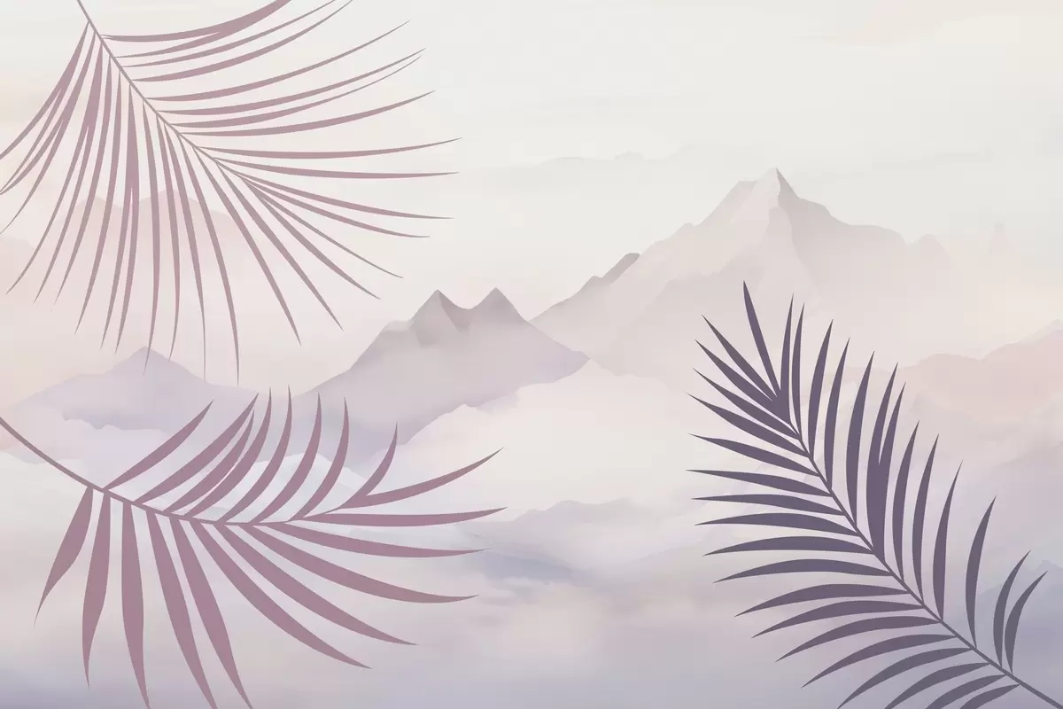 Fotobehang Palmbladeren tegen de achtergrond van de bergen N° w05548v1