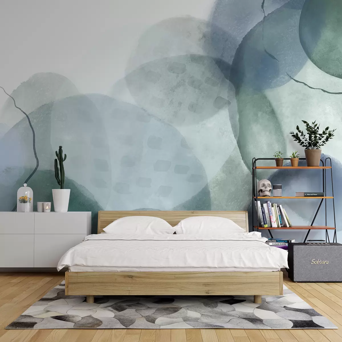 Fotobehang Zachte, aquarelachtige abstracte vormen in de kleuren blauw, groen en wit N° w07926