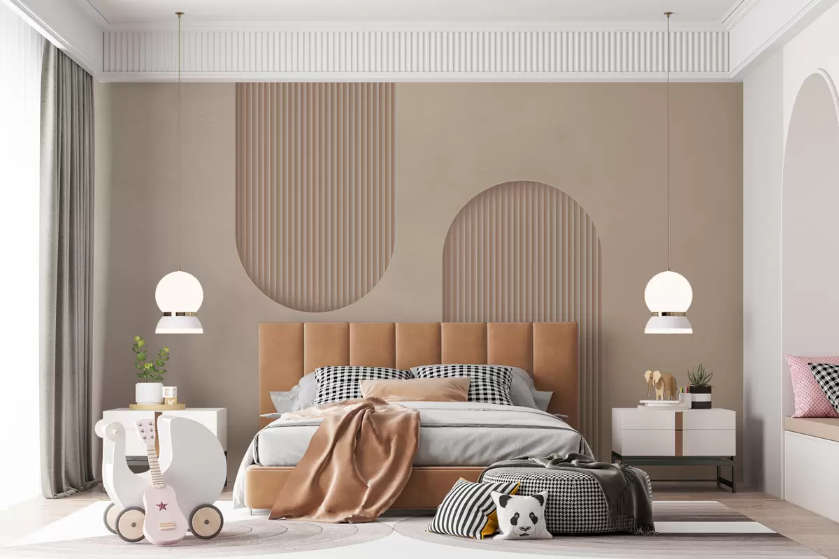 Fotobehang Art Deco structuurbehang in warme beige tinten. Imitatie van volumetrische bogen N° w08048