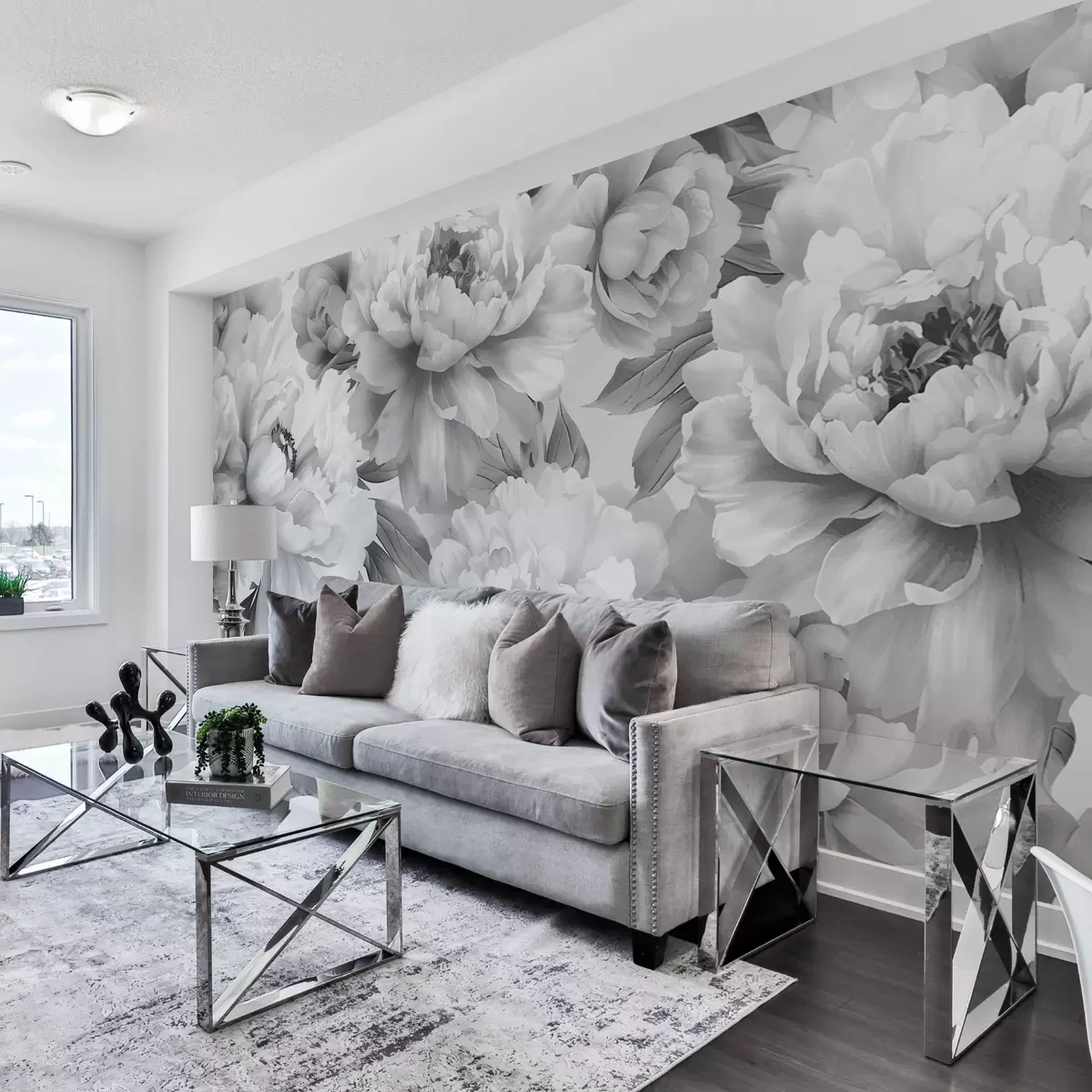 Fotobehang Zwart-witte pioenrozen N° w08068
