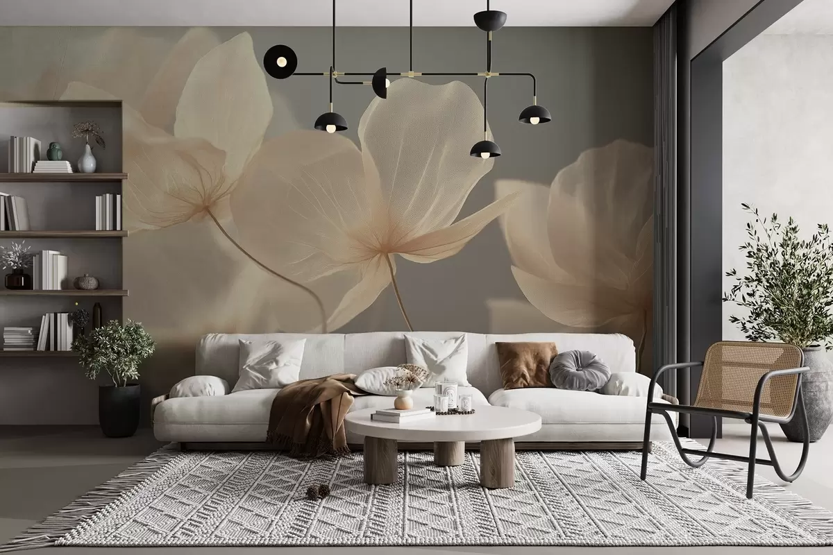 Fotobehang Lotusblaadjes, een delicate compositie met een grijze achtergrond N° w08500v2