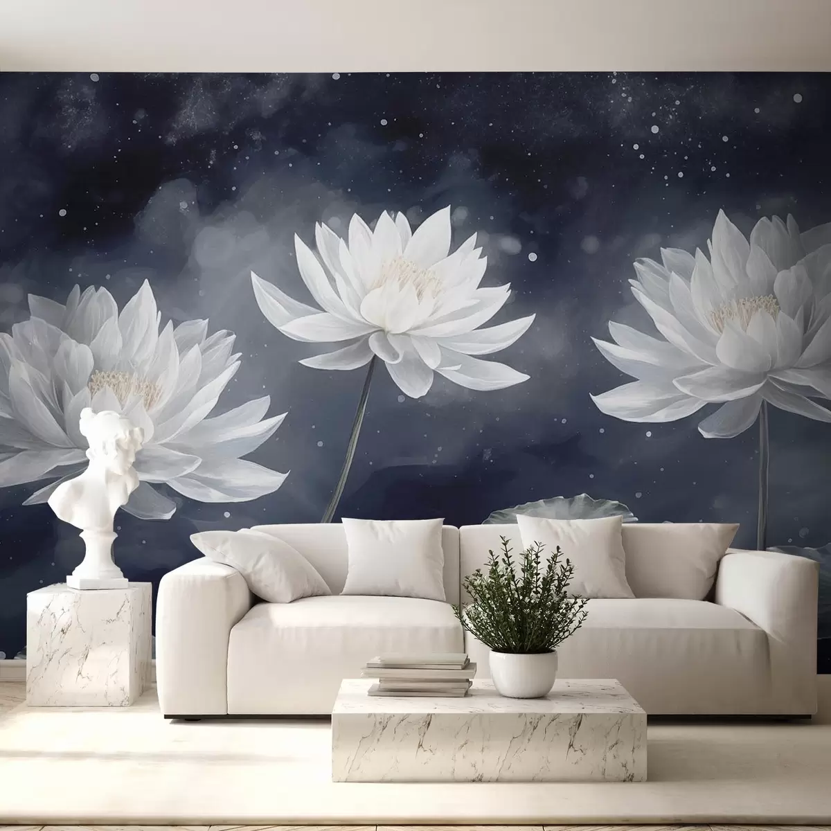 Fotobehang Drie lotusbloemen op een donkere achtergrond N° w08506