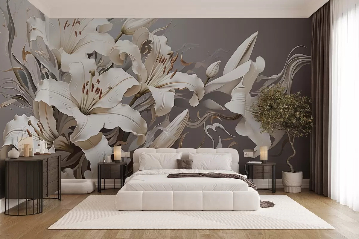 Fotobehang Verfijnde witte lelies in pasteltinten N° w08633v1
