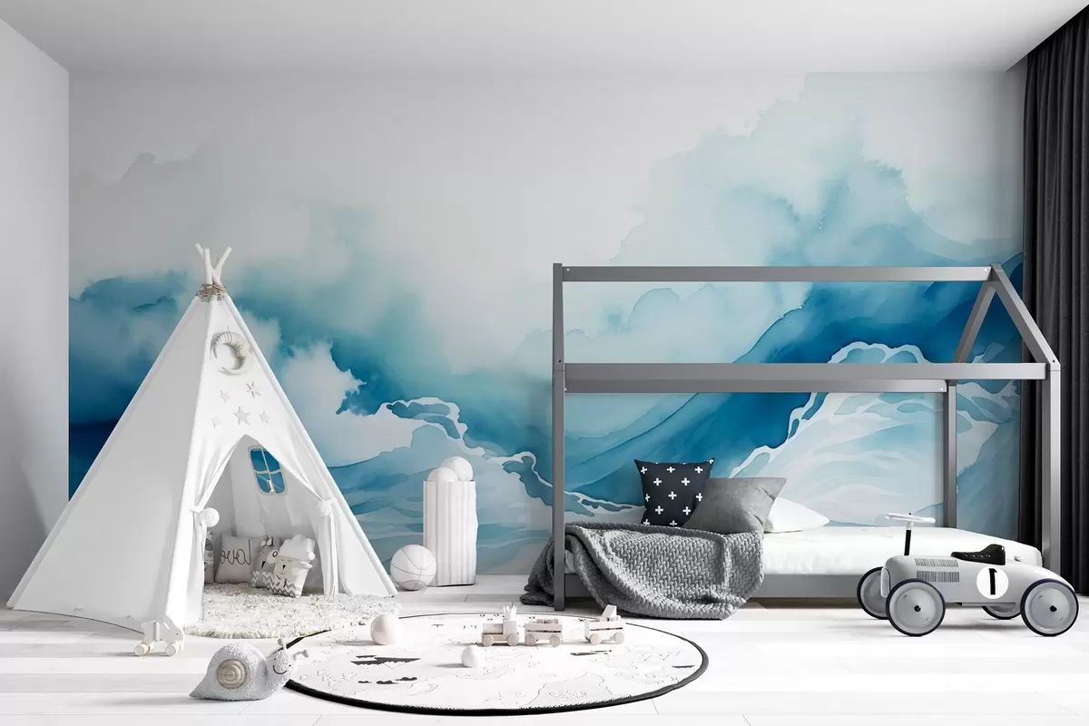Fotobehang Oceaangolven in aquarelstijl in blauwe tinten N° w08655