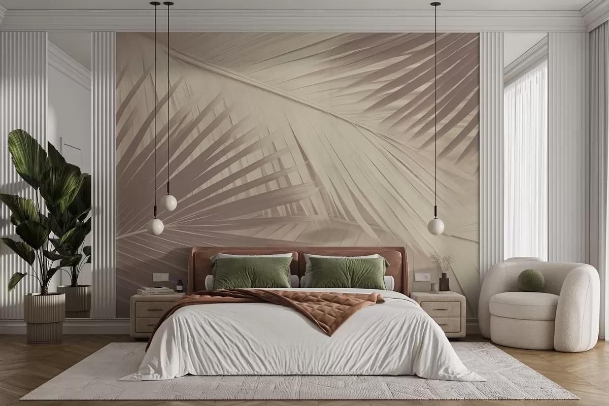 Fotobehang Abstracte palmbladeren in zachte tinten N° w08677