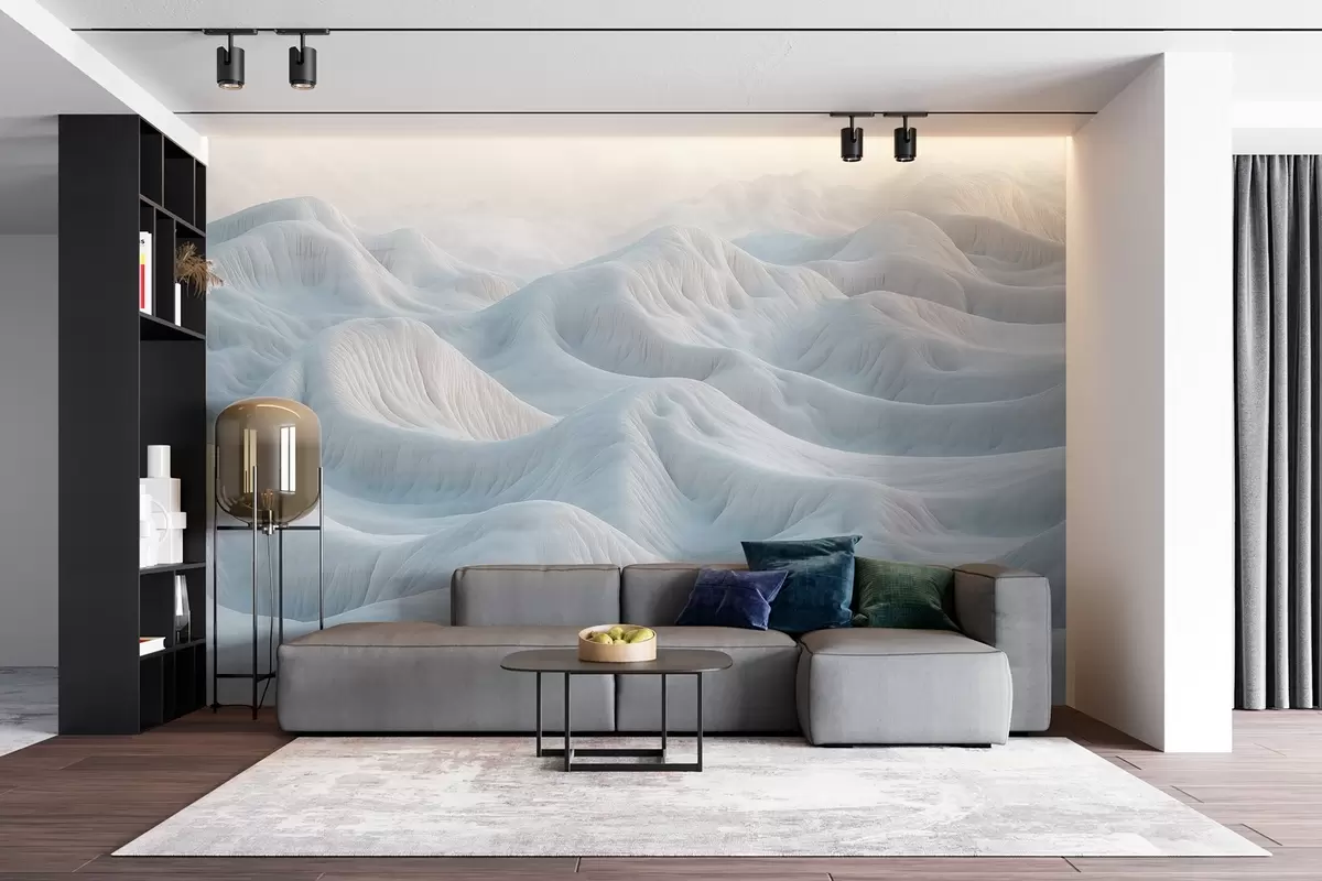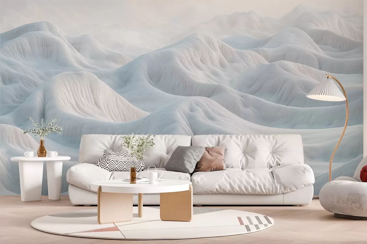 Fotobehang Blauw landschap met glooiende heuvels en duinen N° w08693