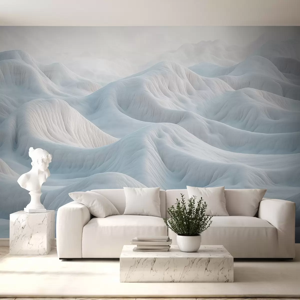Fotobehang Blauw landschap met glooiende heuvels en duinen N° w08693