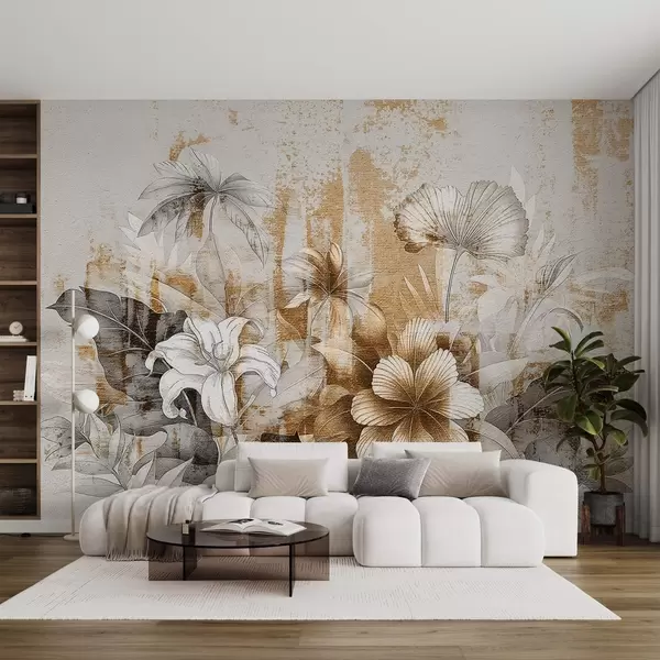 Fotobehang Vintage ontwerp met exotische bloemen en planten N° w08767