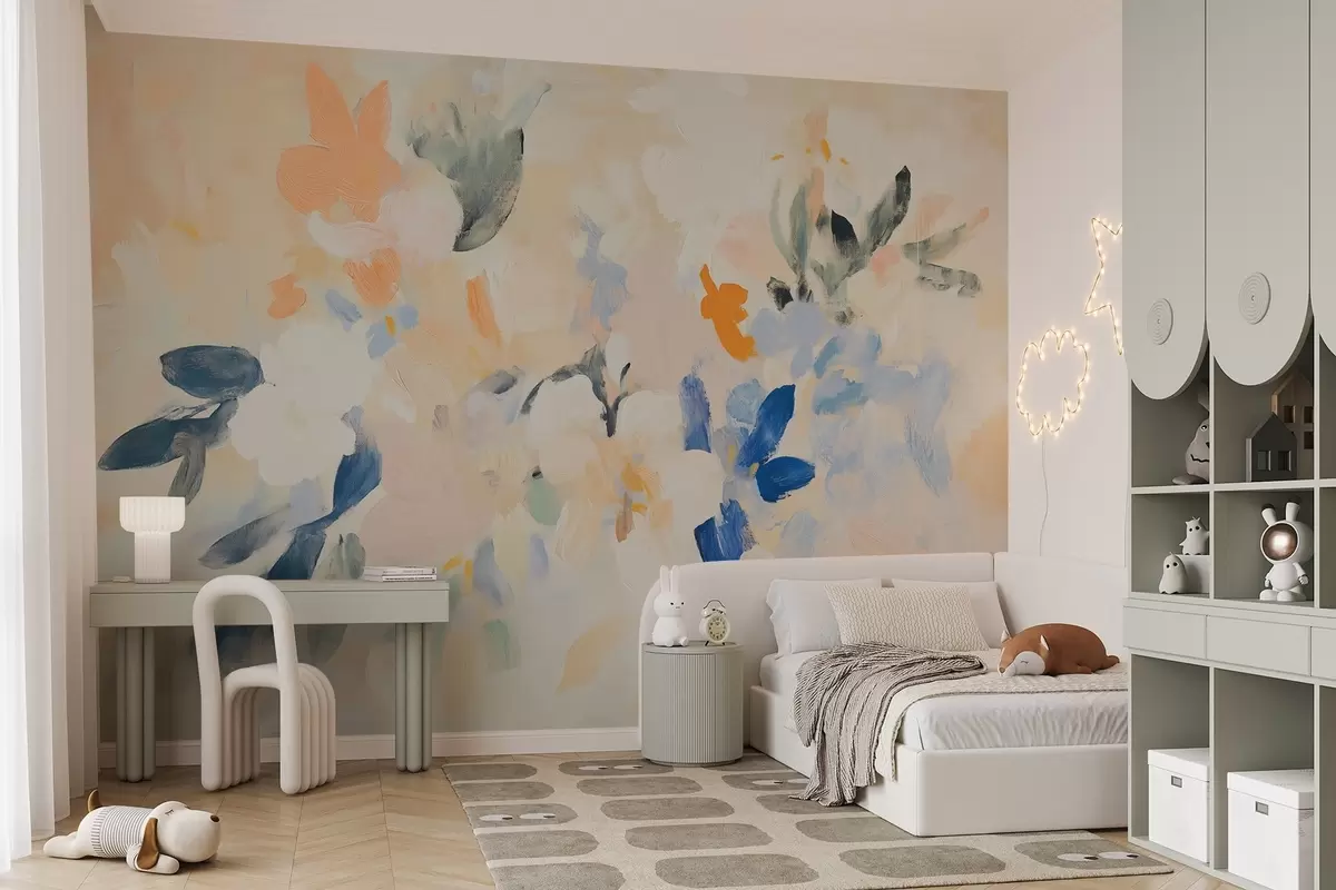Fotobehang Abstracte bloemen in acrylschilderstijl N° w08769