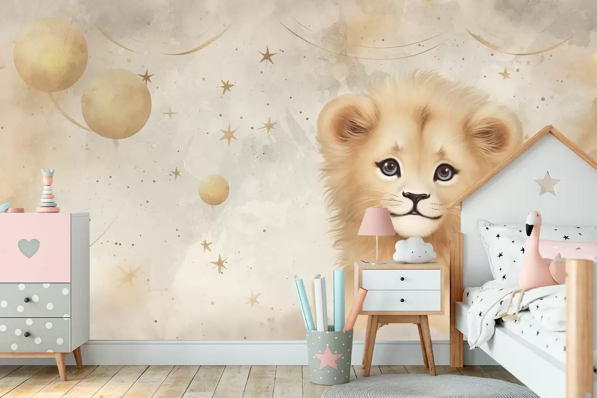 Fotobehang Leeuwenwelp op aquarelachtergrond N° w08845