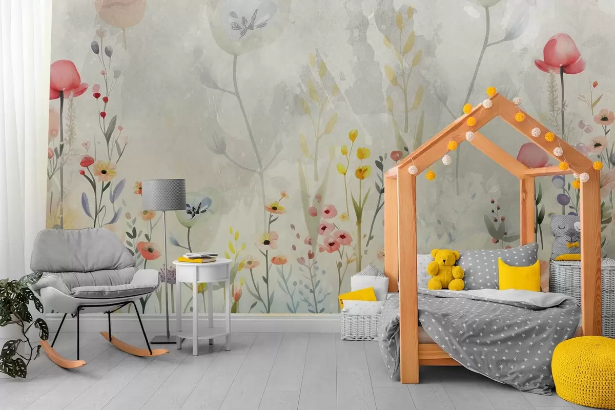 Fotobehang Wilde bloemen, imitatie van aquarelachtergrond N° w08846
