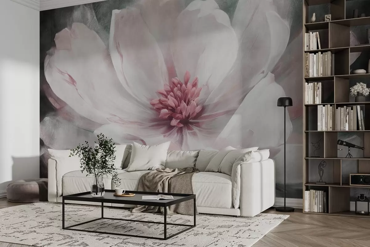Fotobehang Grote witte abstracte bloem met roze N° w08864