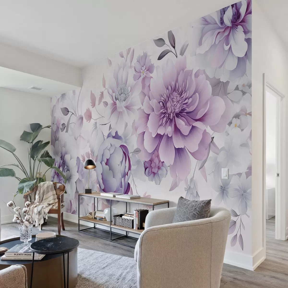 Fotobehang Verscheidenheid aan grote lila bloemen N° w08905v1