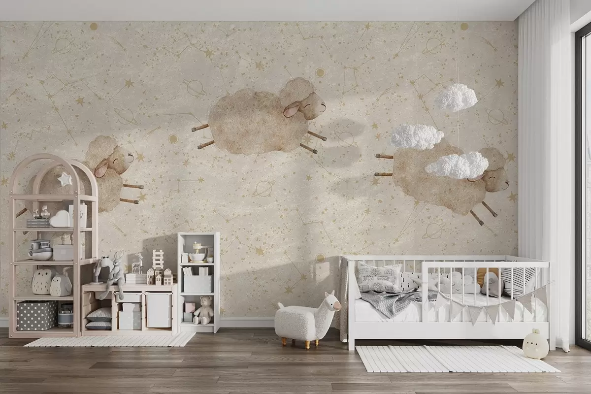 Fotobehang Springende schapen op een sterrenachtergrond N° w08930