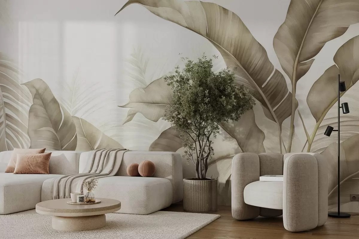 Fotobehang Grote tropische planten in grungestijl N° w08948