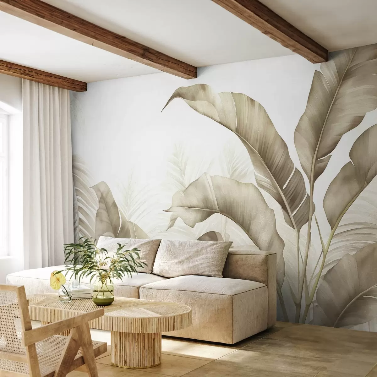 Fotobehang Grote tropische planten in grungestijl N° w08948