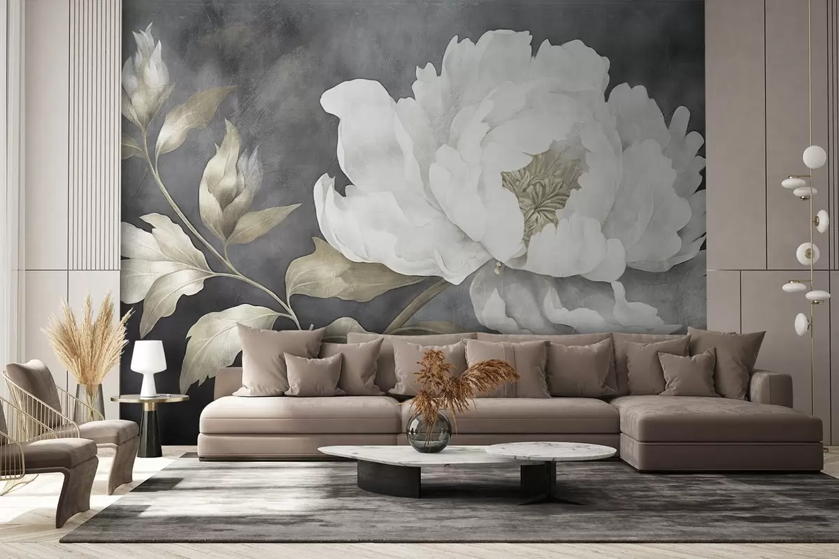 Fotobehang Grote lichte bloem op donkere verouderde achtergrond N° w08949