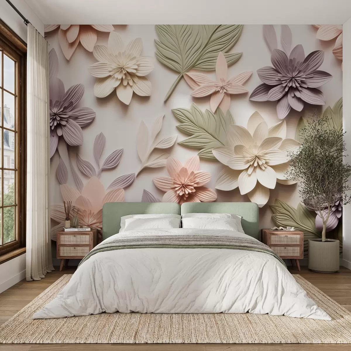 Fotobehang 3D floraal reliëf in de vorm van een papieren compositie N° w08958