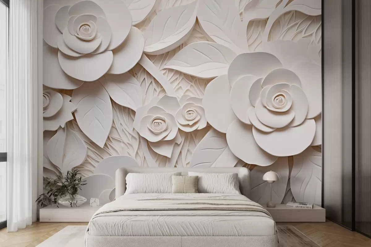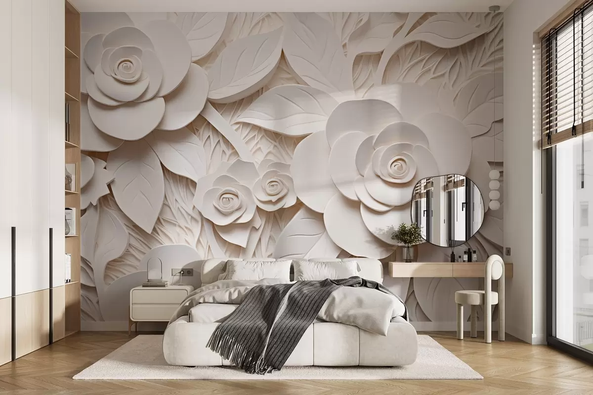 Fotobehang 3D witte volumetrische rozen N° w08963