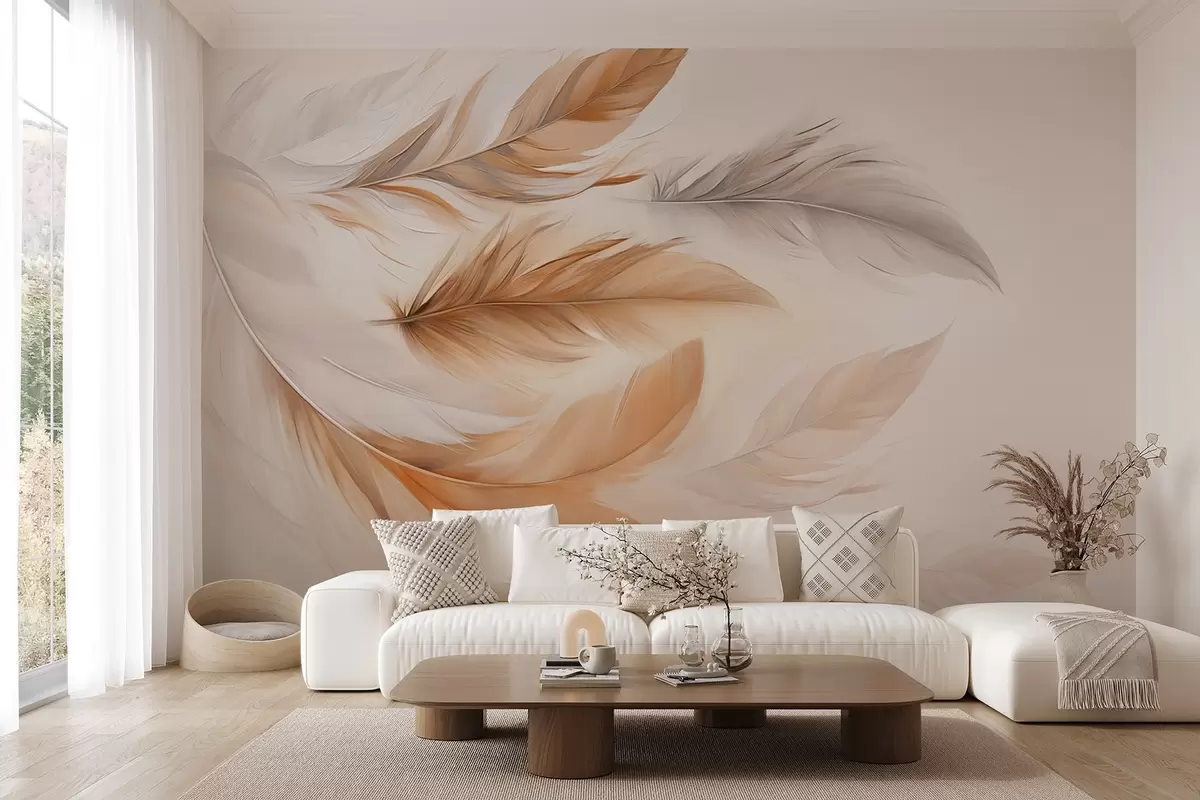 Fotobehang Zwevende luchtige bruin-grijze veren N° w08968
