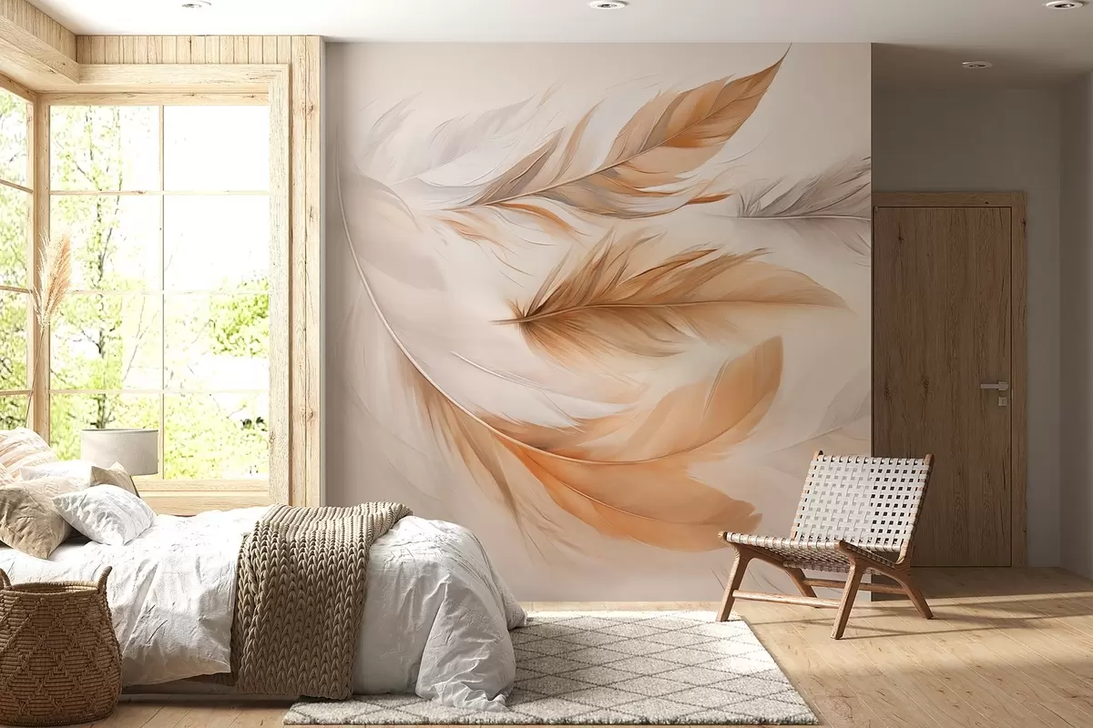 Fotobehang Zwevende luchtige bruin-grijze veren N° w08968
